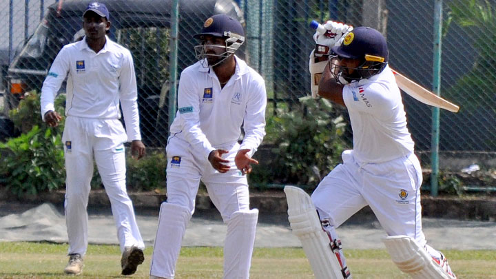 (නවෝද් පරණවිතාන නොදැවී 124, මිනෝද් භානුක 62, තුලින දිල්ෂාන් 39, ශාරුජන් ශන්මුගනාදන් නොදැවී 40, තික්ෂිල ද සිල්වා 50/2, කල්හාර සේනාරත්න 109/2)