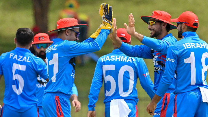 (බ්‍රෙන්ඩන් කිං 50, ශිමර්න් හැට්මෙයර් 46, මුජිබුර් රහමන් 21/4, අස්මතුල්ලා ඔමර්සායි 20/2, ෆසාල්හක් ෆරූකි 29/2)