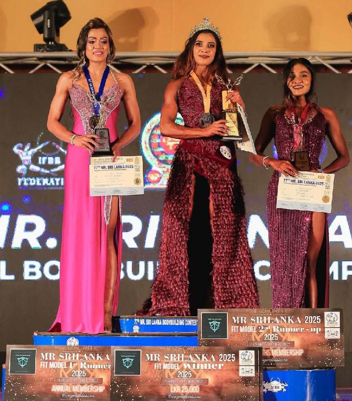 කාන්තා ශරීර නිරූපන (ෆිට් මොඩ්ල්) ඉසව්වේ ජයග්රාහිකාව වූයේ ආර්.එම්.එන්.සදමාලීය.ඇය ට්රාන්ස්ෆෝමස් කායවර්ධන මධ්යස්ථානය නියෝජනය කරමින් තරග වැදුණි.දෙවැනි ස්ථානය එහිම බී.දක්ෂිතා විසින්ද හා තෙවැනි ස්ථානය පානදුර ෆවර් හවුස් කායවර්ධන මධ්යස්ථායේ බී.සුවිනී සුලෝචනා විසින්ද හිමි කර ගන්නා ලදී.