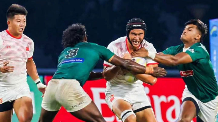පළමු අර්ධය නිමාවට පත්වන විට ලකුණු 17-05 ක් ලෙස පෙරමුණ ගැනීමට චීනය සමත් වුවද, දෙවැනි අර්ධයේදී ඉතා ආක්‍රමණශීලී අයුරින් තරගයට අවතීර්ණ වූ ශ්‍රී ලංකා ක්‍රීඩකයෝ නියමිත කාලය අවසන් වන විට දෙපිලේම ලකුණු 17-17 ක් ලෙස සම තත්වයට පත් කළහ. එහෙත් ඉන් අනතුරුව ක්‍රියාත්මක වූ අතිරේක කාලයේදී උත්සාහක දිනුමක් වාර්තා කළ චීනය තරගයේ ජය තමන් සතුකර ගත්තේය.