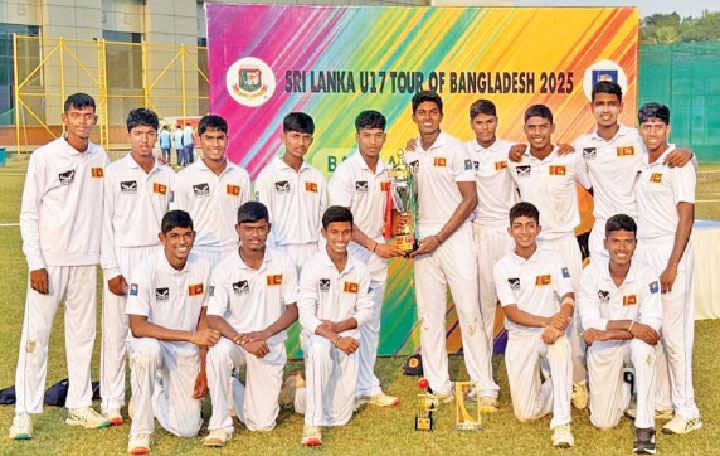 සංචාරක ශ්‍රී ලංකා වයස 17 න් පහළ කණ්ඩායම සහ බංග්ලාදේශ වයස 17 න් පහළ කණ්ඩායම අතර බංග්ලාදේශයේ ඩකා නුවරදී පැවැති දෙවැනි තෙදින තරගයෙන් කඩුලු 9 ක පහසු ජයක් වාර්තා කළ ශ්‍රී ලංකා ක්‍රීඩකයෝ, දෙරට අතර පැවැති තරග 2 කින් සමන්විත තෙදින තරගාවලිය 1-1 ක් ලෙස සම කිරීමට සමත් වූහ.