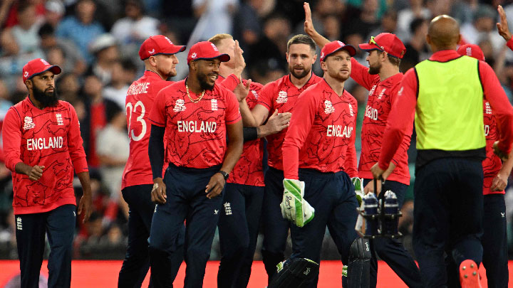 කාසියේ වාසිය දිනා පළමුවෙන් පන්දුවට පහරදුන් එංගලන්තය ඕවර 20 අවසානයේ කඩුලු 7 ක් දැවී ලකුණු 202 ක් ලබාගත් අතර එහිදී වේගවත් පිතිහඹයක නිරත වූ විල් ජැක්ස් පන්දු 22 කදී හයේ පහර 4 ක් සහ හතරේ පහර 3 ක් සමග නොදැවී ලකුණු 53 ක් රැස්කළේය. සෑම් කරන් (25) සමග එක්ව 6 වැනි කඩුල්ල වෙනුවෙන් පන්දු 25 කදී ලකුණු 54 ක සම්බන්ධතාවක් ගොඩනැගීමටද ජැක්ස් සමත් විය.