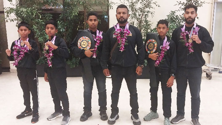 තායිලන්තයේ පැවති 07 වන ලෝක මූයි තායි ශූරතා තරගාවලියට ශ්රී ලංකාව නියෝජනය කරමින් සහභාගී වූ ක්රීඩකයෝ , ඔවුන් තරග කළ ඉසව් වලින් බඳ පටි දෙකක් සහ රන් පදක්කම් තුනක් දිනා ගෙන ඊයේ (20 වැනිදා) අලුයම කටුනායක ගුවන් තොටුපොළින් නැවතත් මව්බිමට පා තැබූහ.