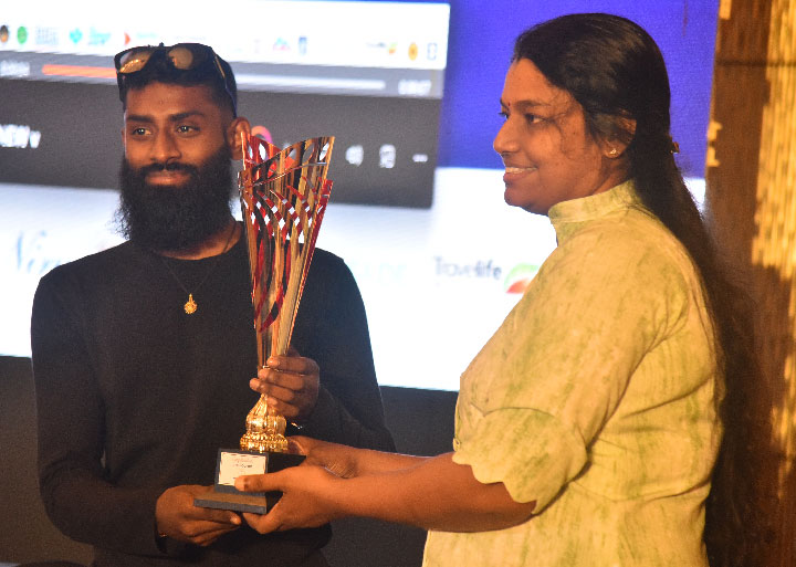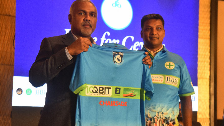 ස්පොට් ඔන් මනි සමාගමේ ප්‍රධාන විධායක නිලධාරී නොයෙල් සුගන්දන් මහතා සහ වී.එස්.එස්. නිෂ්පාදන සමාගමේ ප්‍රධාන විධායක නිලධාරී එස්. සුගතන් යන මහත්වරුන් විසින් ‘ශ්‍රී ලංකාව වෙනුවෙන්’ පාපැදි සවාරියේ 2026 නිල බැනියම නිරාවරණය කළ අවස්ථාව