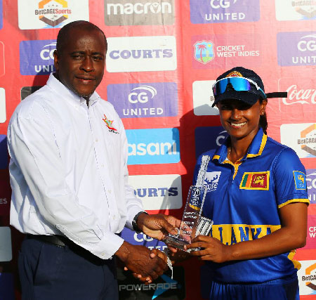 (හසිනි පෙරේරා 27, හර්ෂිතා සමරවික්‍රම 70, විෂ්මි ගුණරත්න 26, කවීෂා දිල්හාරි නොදැවී 45, නිලක්ෂි සිල්වා 14, හේලි මැතිව්ස් 33/2, කරිෂ්මා රම්හැරක් 39/2)