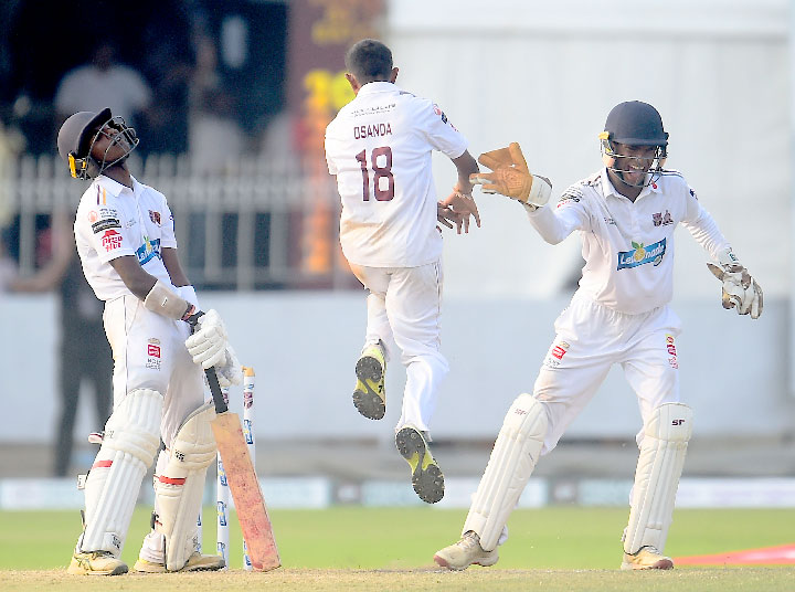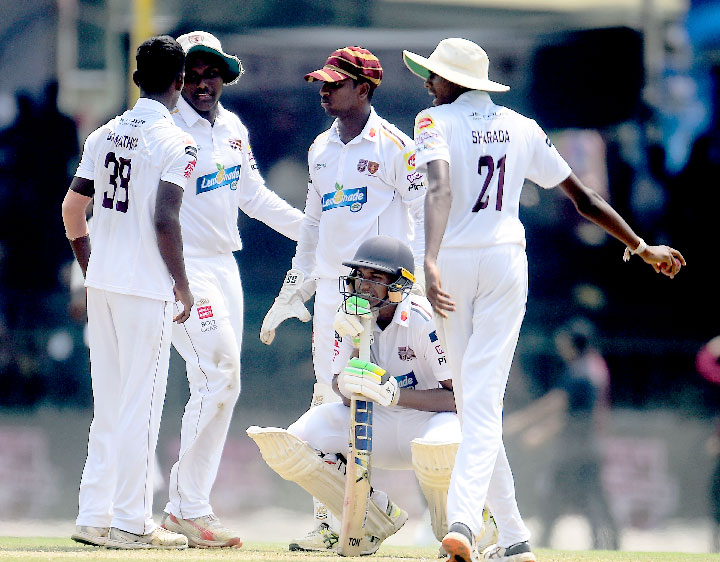 (නෙතුල් එදිරිමාන්න 165, දනිඳු සෙල්ලප්පෙරුම 33, හිමිර කුඩාගම 24, ශාරද ජයරත්න 38, ඔවින් පෙරේරා 53, ඔසඳ පමුදිත 74/4)